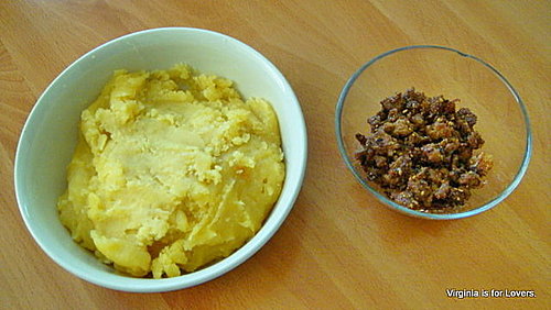 滷肉也事先炒好,接著就把滷肉跟綠豆沙組合好,