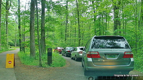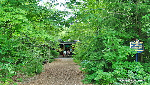 我們預約的是當天8:30的場次,一路開過去都沒什麼車也沒有路牌指示,雖然風景很優美,但是心裡一直在想到底有沒有走錯路,當路邊出現Fallingwater指示牌時,心裡再次肯定GPS真是個好物.心情也隨之愉悅起來.