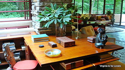 開始找資料及瀏覽網站之後,發現這是建築師們都很崇拜的一棟房子,甚至有<全世界最美的房子>之美譽,建築師們把這裡當作聖地般的來一窺建築大師萊特(Frank Lloyd Wright,18671959)的經典之作.老公之前就已經買了萊特的書及圖集來看,現在既然在美國當然想去看看,而且只在Viginia西北方的賓州(Pennsylvania),車程大約才56小時,那就把落水山莊當做今年夏天旅行的第一站.