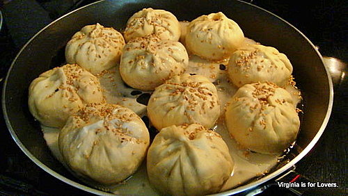 8.平底鍋放入2T的油,放入發酵好的包子.