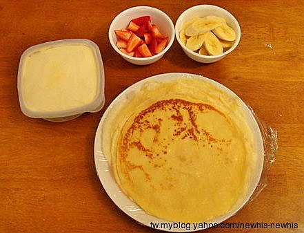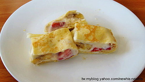 再放上愛吃的水果,再塗一些醬包起來就好囉!
